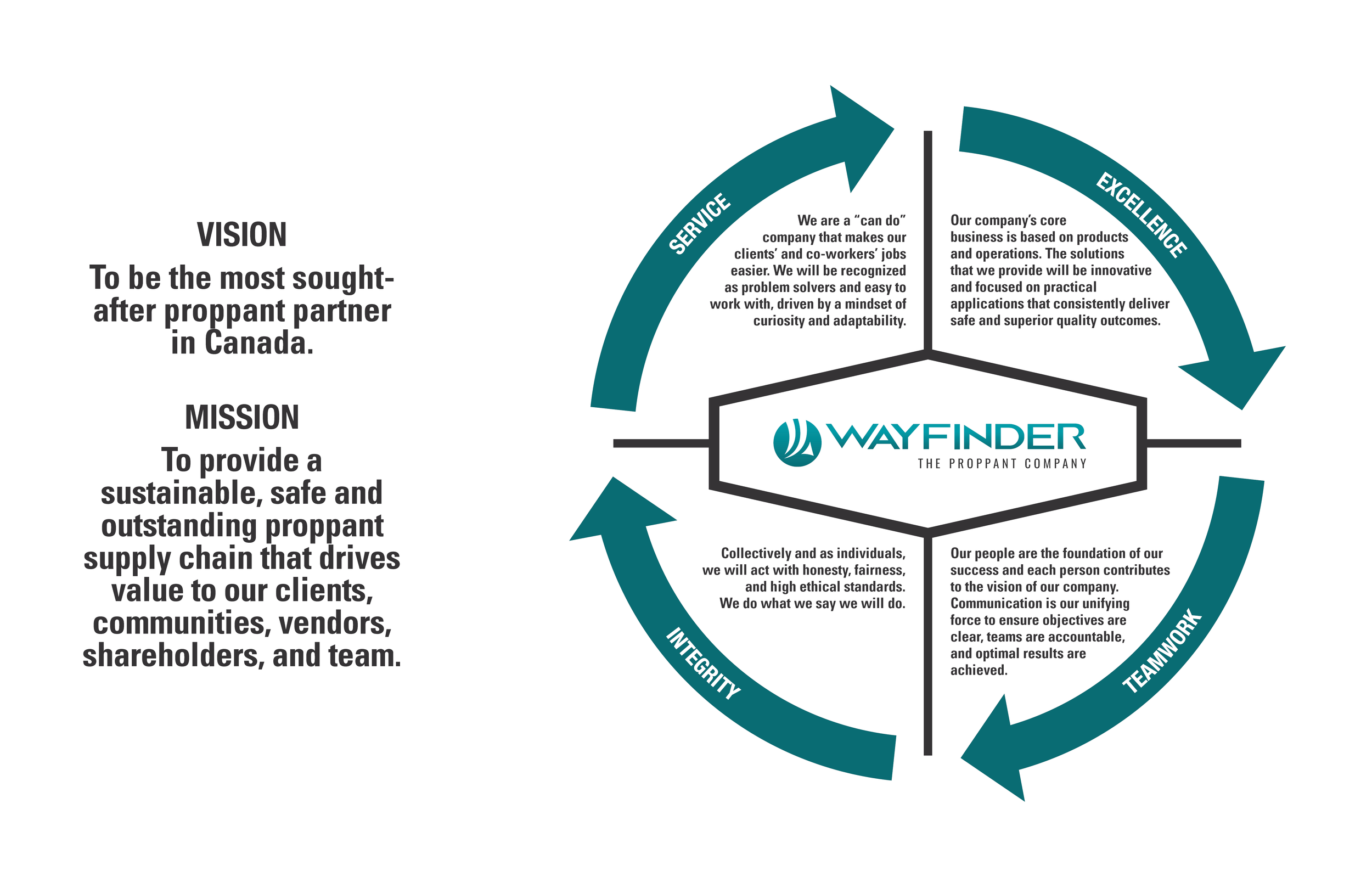 To provide a sustainable, safe and outstanding proppant supply chain that drives value to our clients, communities, vendors, shareholders, and team